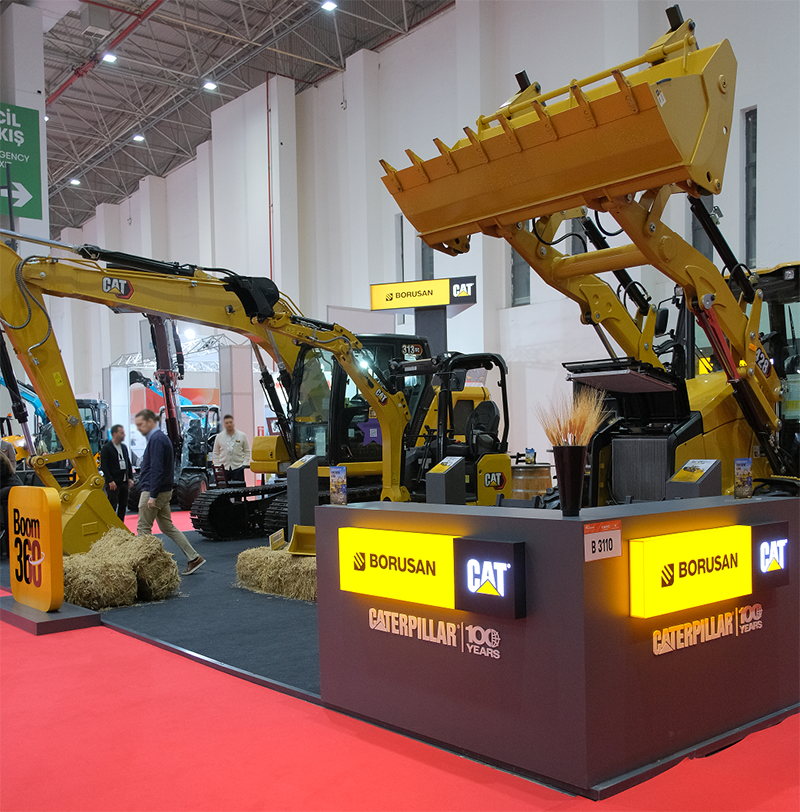 “Daha İyi Bir Dünya İçin Çözüm Üretiriz” şirket amacı ile operasyonlarını Türkiye’nin yanı sıra Kafkasya ve Orta Asya’da sürdüren Borusan Cat, tarım ve hayvancılık sektörünün önemli markalarını bir araya getiren Agroexpo 20. Uluslararası Tarım ve Hayvancılık Fuarı’nda, fark yaratan iş makinelerini tanıttı. İzmir’de düzenlenen fuarda; Cat ® 301.7 Mini Ekskavatör, Cat ® 313 GC ekskavatör ve Cat ® 428 Kazıcı Yükleyici’yi konuklarına tanıtan Borusan Cat ayrıca son teknolojilerden yararlanan uygulamaları arasında yer alan, müşterilerine özel tüm hizmet ve çözümlerini bir araya topladığı Boom360, ekipman yönetim sistemleri çözümü VisionLink ile sektörün paydaşlarına yardımcı olan Müşteri Destek Çözümleri’ni konuklarının beğenisine sundu.