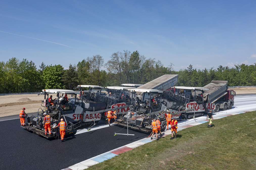 Yüksek hız ve itme kuvvetlerine maruz kalan yarış pistlerinde derz oluşumunun önüne geçmek amacıyla sıcak üstüne sıcak serim yöntemi tercih edildi. Üç adet Vögele SUPER 1800-3i finişer, tüm pist genişliği boyunca yan yana ve hafif kaydırmalı şekilde çalıştı.
