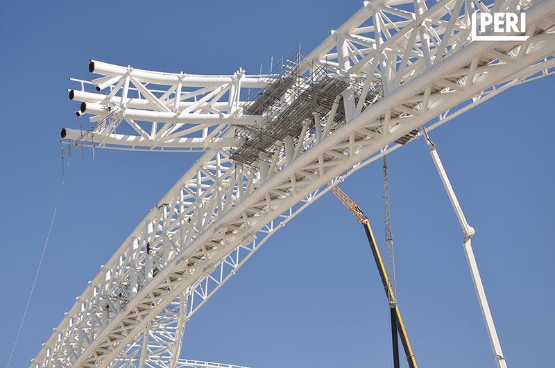 Modüler yapısıyla çelik montajın yanı sıra erişim, yük ve bakım-onarım iskelelerinde de kullanılabilen PERI UP Flex, hafifliğiyle kurulum süresini kısaltırken dayanıklı çelik yapısıyla uzun ömürlü bir çözüm sundu. PERI UP Flex ürünleri bu özellikleriyle projeye hem hız hem de güvenlik açısından dünya standartlarında katkı sağladı.