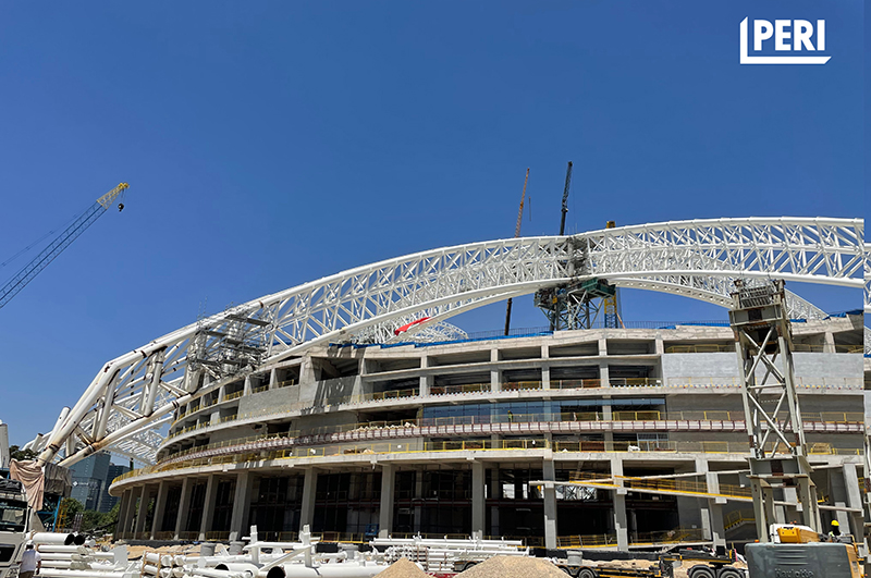 Stadyumun çelik montajında kullanılan PERI UP Flex Modüler İskele Sistemi; yüksek taşıma kapasitesi, hafif yapısı ve hızlı kurulum özellikleriyle iş güvenliği ve verimlilikte önemli avantajlar sağladı. Kama bağlantı teknolojisi ile hızlı ve hatasız montaj yapılırken, entegre korkuluk ve kaymaz platformlarla uluslararası güvenlik standartları sağlandı.
