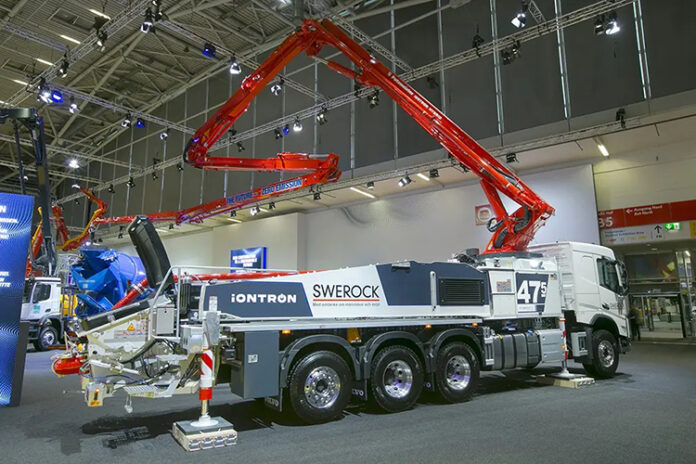 İnşaatta çevre korumanın artan önemine yanıt olarak Putzmeister, iONTRON hibrit kamyona monte beton pompalarını piyasaya sürüyor. Serideki 20-40m sınıf modeller bulunuyor. Putzmeister Ürün Yönetimi Başkanı Markus Frasch, “iONTRON, çevre dostu bir şekilde çalışmayı kolaylaştırıyor. Sadece kabloyu açın, prize takın ve şantiyedeki güç kaynağını kullanın. Dizel tahrikten elektrik moduna geçiş de basit ve çalışma sırasında yapılabilir. Destek konfigürasyonundan beton pompalamaya kadar elektrik motorunun tüm gücünden yararlanmak için bir düğmeye basmanız yeterlidir. Yerel elektrik karışımına bağlı olarak bu, emisyonları %100’e kadar azaltmayı mümkün kılıyor” dedi.