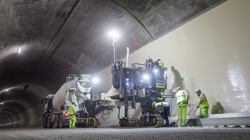 İlk projenin ardından ekip, Steiermark bölgesindeki Semmering Tüneli şantiyesine geçti. Burada her iki tarafta bordür oluk profili uygulandı. Projenin en kritik noktası, yeni profilin tüneldeki mevcut bordür oluk profilinin üzerine entegre edilmesiydi. Profilin statik dayanımı ve uzun ömürlü performansı için yüksek hassasiyetle çalışılması gerekiyordu. Bordür uygulamasının ardından, iki profil arasına SP 1500 kayar kalıplı finişer ile iki katmanlı beton yol inşa edildi. Semmering Tüneli, Avusturya’nın önemli kuzey-güney bağlantılarından biri olduğu için projenin mümkün olan en kısa sürede tamamlanması gerekiyordu. SP 33’te serme kalıbının değiştirilmesi için yalnızca 8 cıvatanın gevşetilmesi yeterli olduğundan, ekip ciddi zaman tasarrufu sağladı.